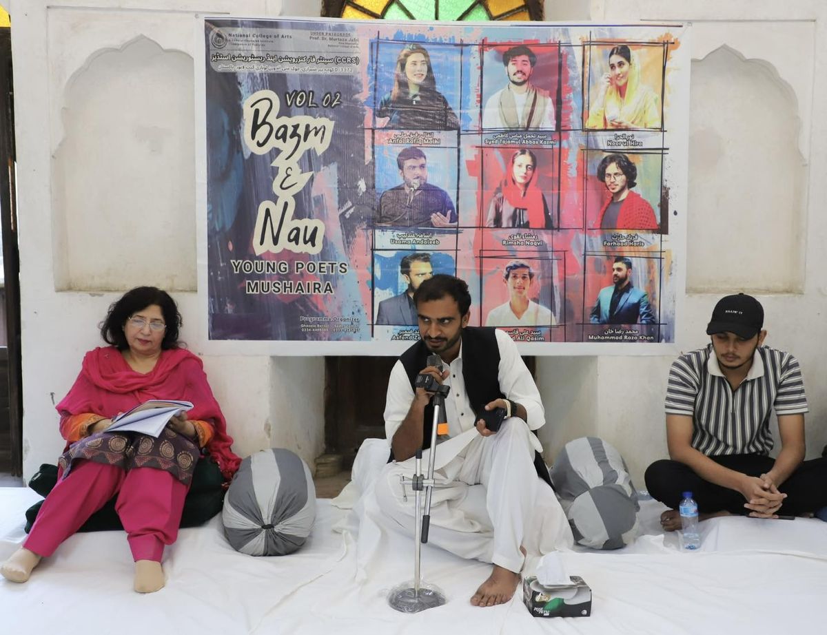 The National College of Arts, Lahore, hosted Bazm-e-Nau (Vol. 1), a captivating Young Poets Mushaira that celebrated the fragrance of new verses and the passion of emerging voices. Held on October 30th, 2025, at the Centre for Conservation and Restoration Studies (CCRS), the gathering echoed with emotion, rhythm, and thought as young poets; Mashallah Saif, Saad Jabbar, Tahir Javed, Noor ul Hira, Syed Ali Qasim, Muhammad Owais, and Jordan Ali shared their words with heartfelt conviction.
