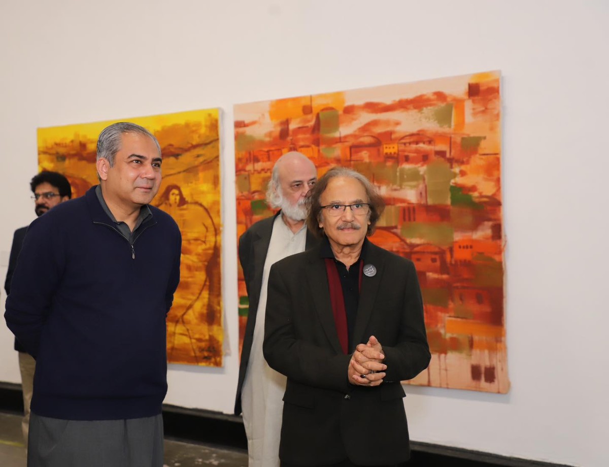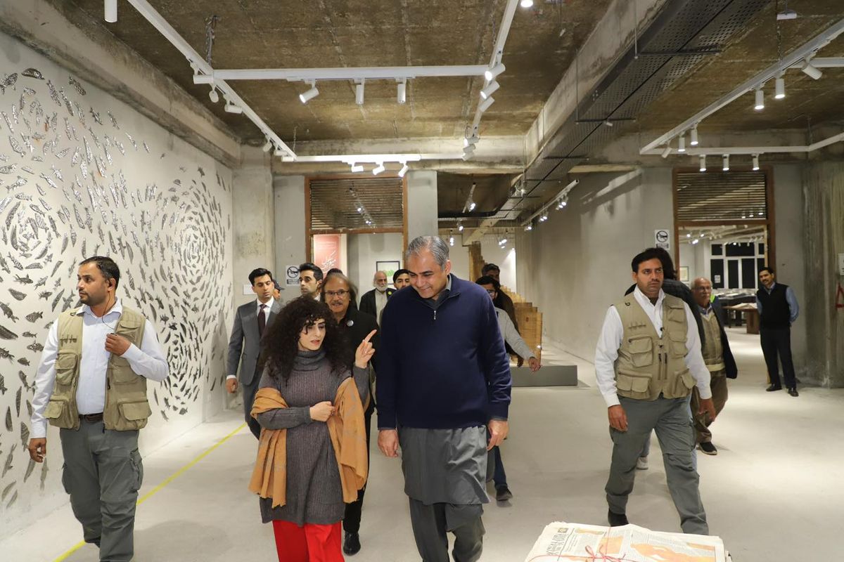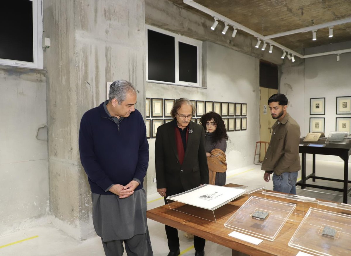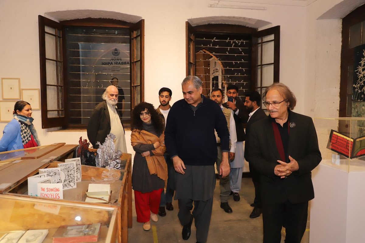 Federal Minister Syed Mohsin Raza Naqvi visited the National College of Arts for the NCA Triennale 2025. He was warmly received by the Vice Chancellor, Prof. Dr. Murtaza Jafri, who joined him through the expansive displays across the campus.
