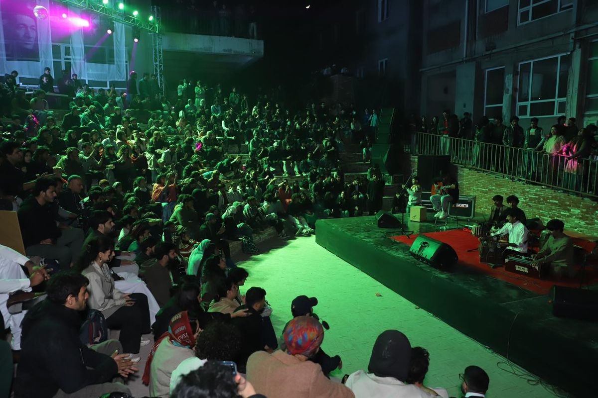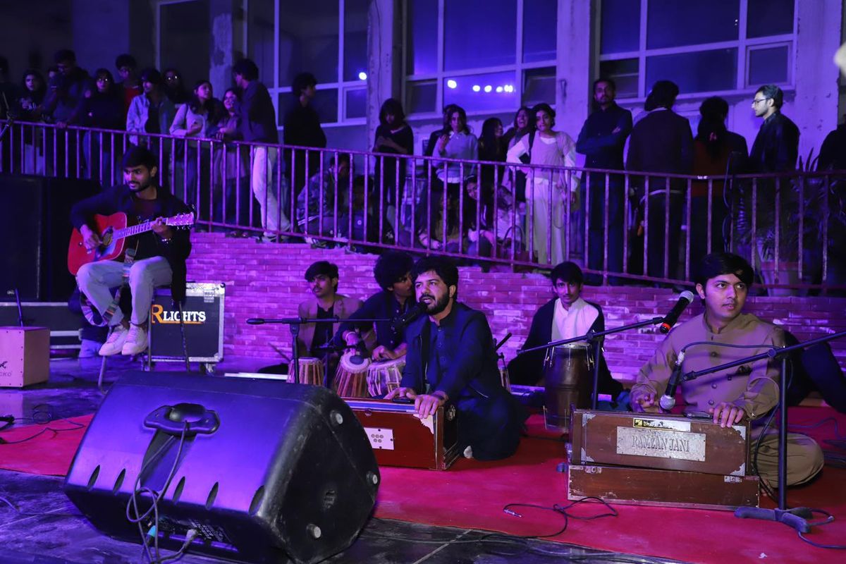 Day 27 of the NCA Triennale was a true celebration of rhythm and melody, featuring mesmerizing performances by renowned artist Ramzan Jani, along with the Eastern and Western Music Societies of NCA. Held at the Amphitheater in the Graduate Block, the event brought together a diverse audience of students, faculty, and music lovers, all immersed in the vibrant sounds of the performances.