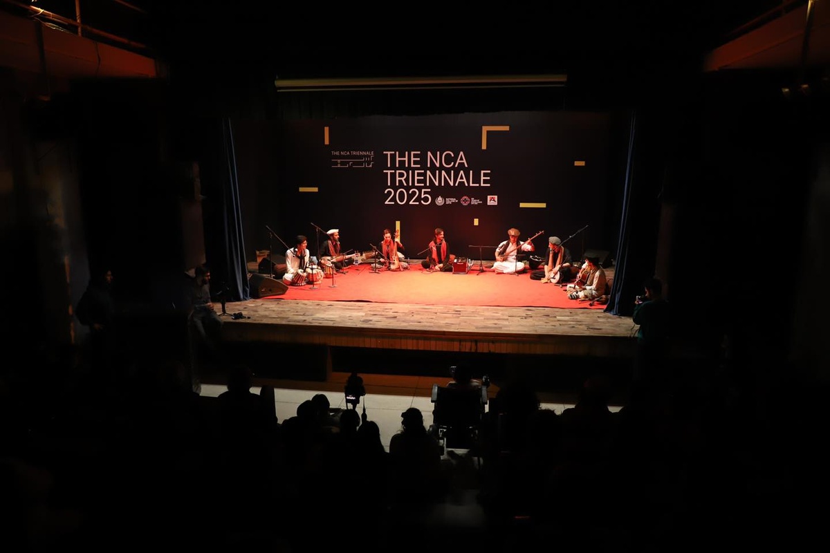 Evenings at NCA Triennale are special. Just like that, Day 14 of the Triennale featured mesmerising ghazal and qawwali performances that left the audience enthralled. The performances included soulful renditions by Mohsin Fayyaz, a talented first year student, and the dynamic NCA student group, Mayon-e-Echar, comprising third year students. Mayon-e-Echar’s performance was a cultural celebration of North Pakistan’s rich musical heritage, showcasing the region’s vibrant traditions and timeless melodies.