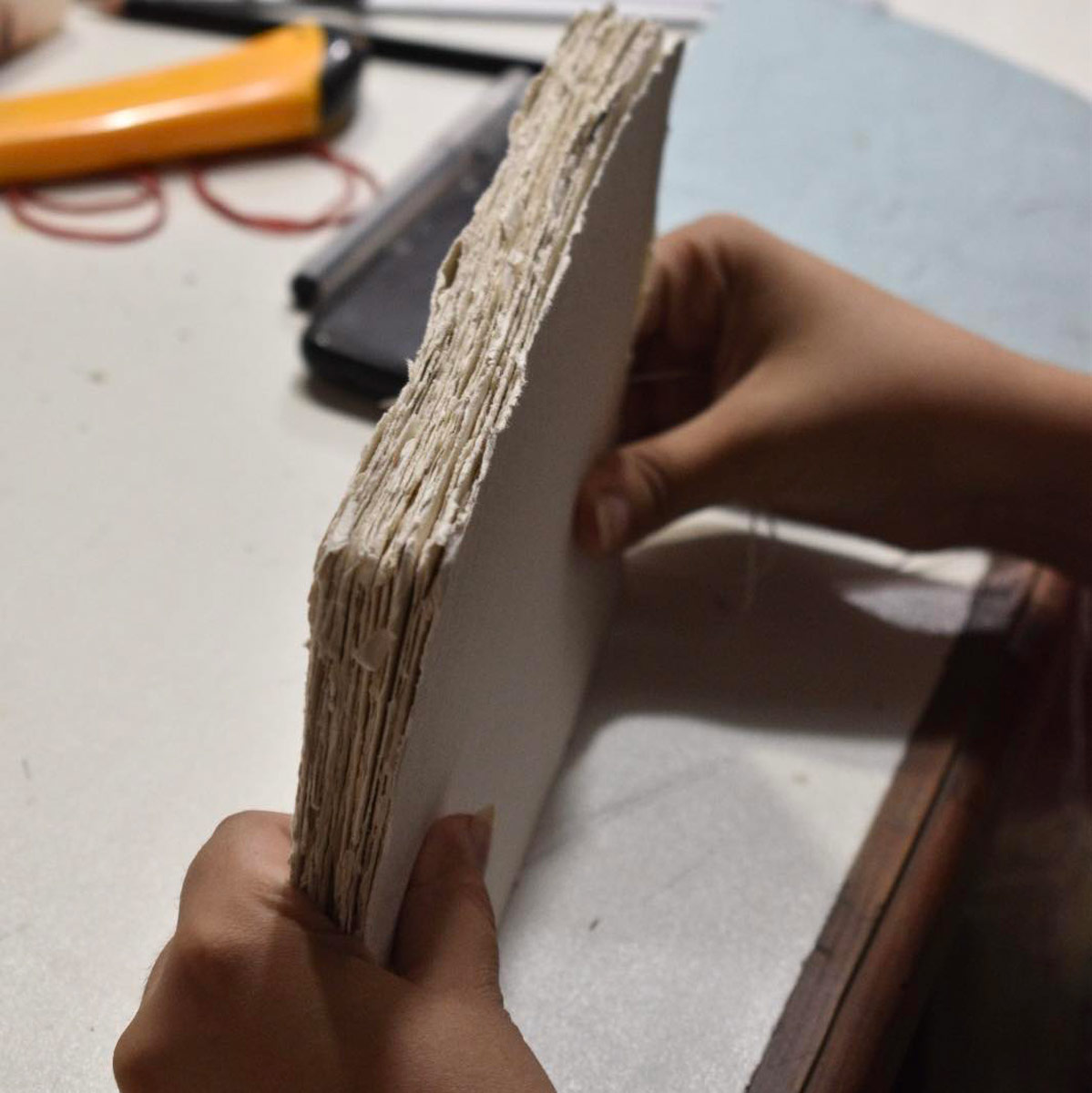 The workshop "Tradition of Islamic Bookbinding", led by Amina Cheema, introduced participants to the heritage of Islamic bookbinding as both craft and artistic practice, reviving its place within the arts of the book, rooted in kasb (skill) and kamal (excellence).