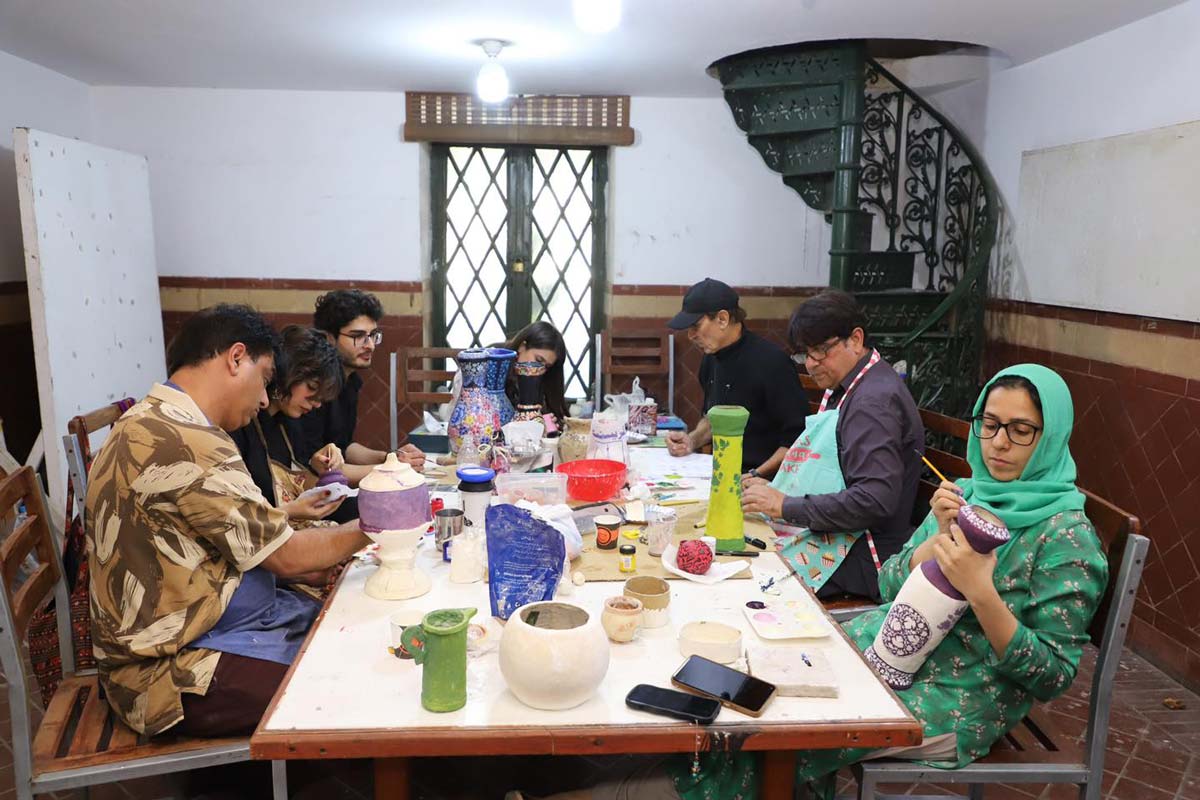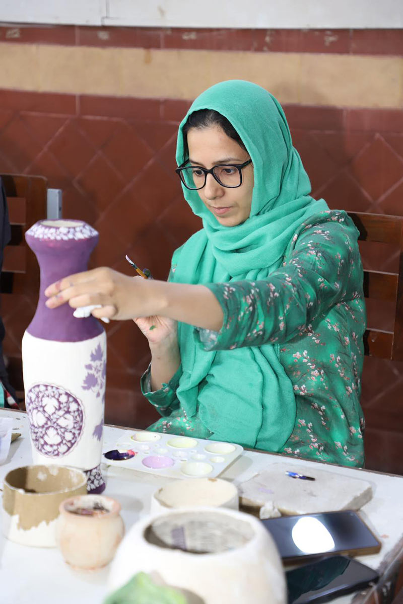 Participants explored every stage of the papier mache process, from preparing the paper pulp and shaping forms to layering, burnishing, and hand painting motifs inspired by Kashmiri tradition. Under Rasheed’s guidance, the workshop became a space of dialogue between heritage and contemporary art making, where texture, colour, and form intertwined to tell stories of cultural continuity and transformation.