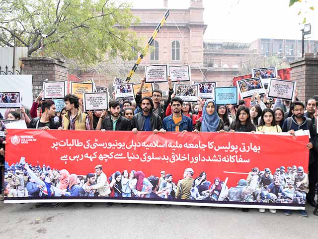 National College of Arts organized a walk on the campus to show solidarity with Students of Jamia Millia Islamia Dehli India and condemned the brutalities of Dehli Police.