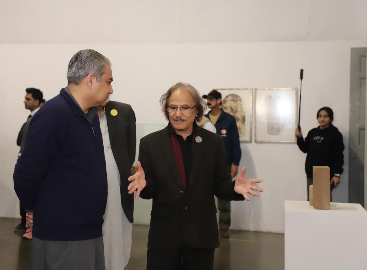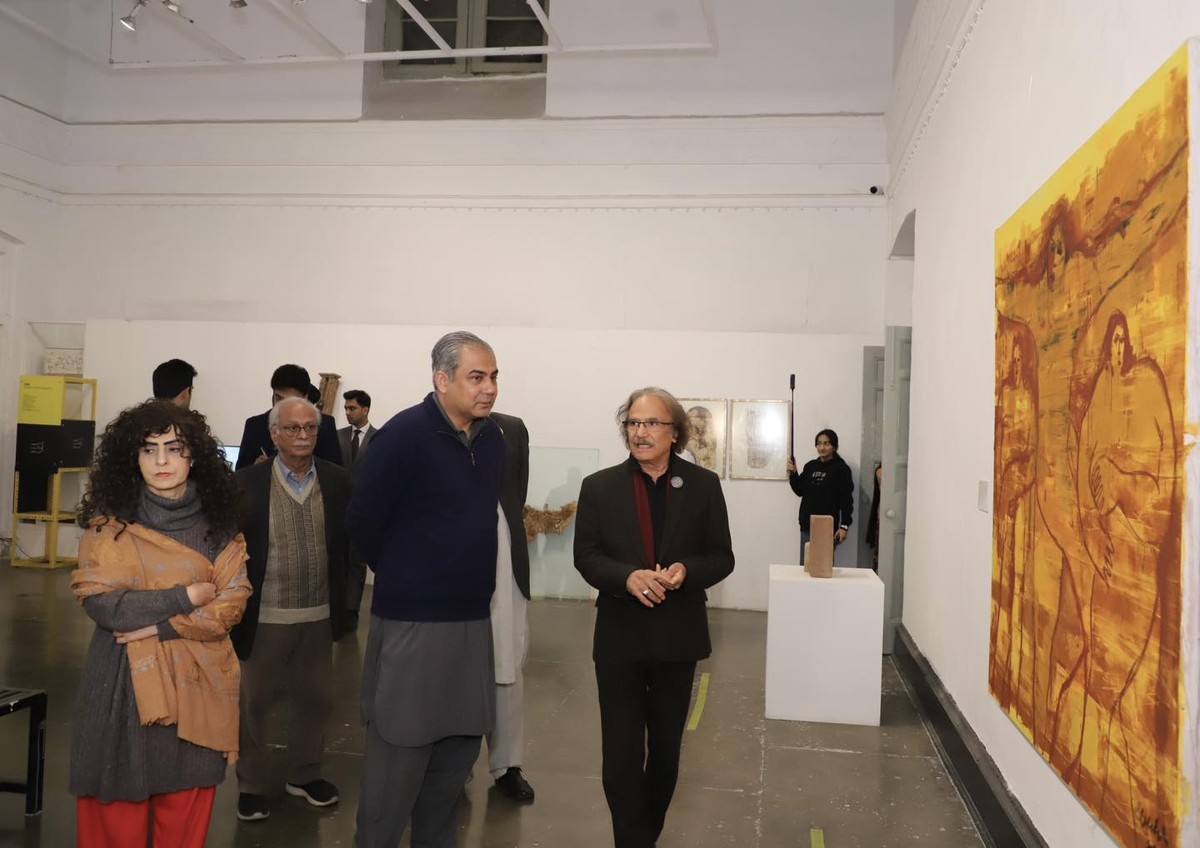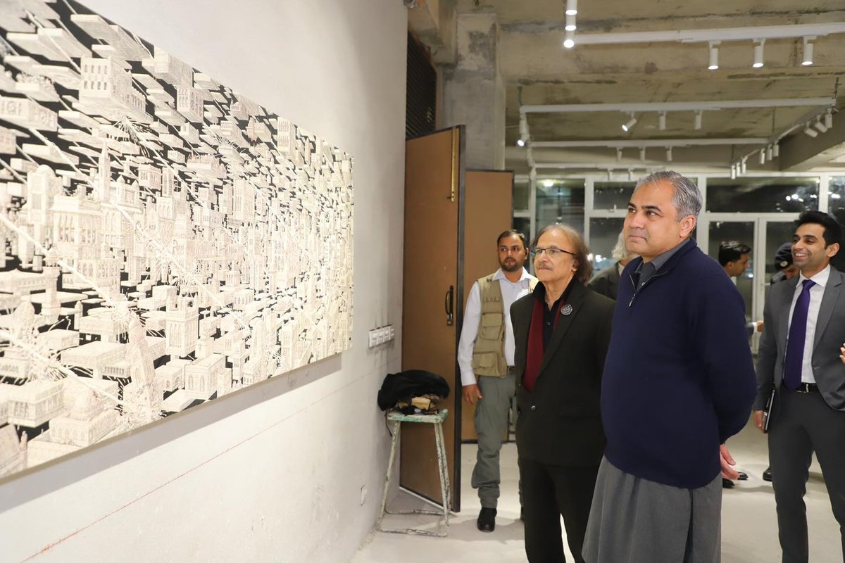 Federal Minister Syed Mohsin Raza Naqvi visited the National College of Arts for the NCA Triennale 2025. He was warmly received by the Vice Chancellor, Prof. Dr. Murtaza Jafri, who joined him through the expansive displays across the campus.