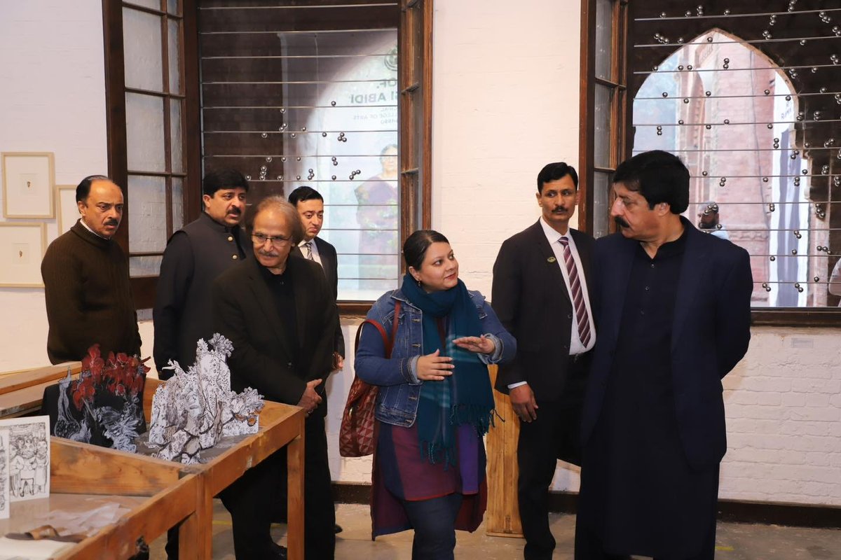 He also visited the newly constructed Graduate Block, where he was briefed on its enhanced academic and studio facilities. The Governor viewed the installations, displays, and ongoing projects showcased by graduate students, expressing appreciation for the innovation and artistic excellence that the National College of Arts continues to foster.