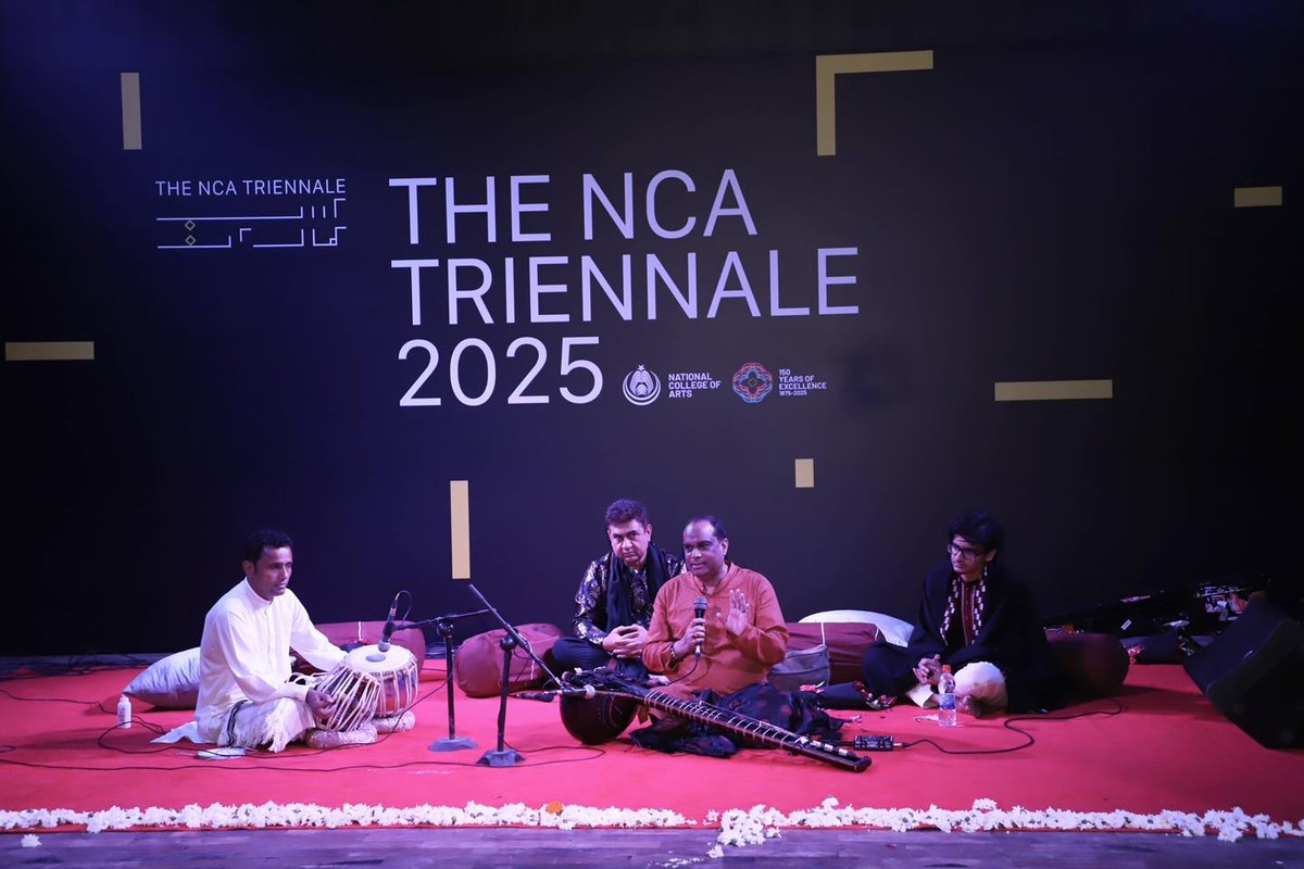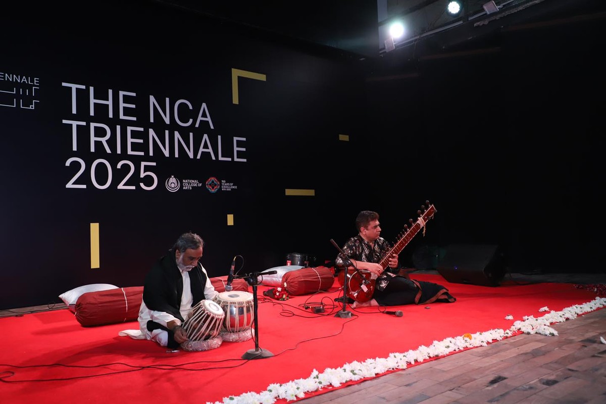 The event concluded with Ustad Ashraf Sharif Khan, joined by Irfan Haider and Sabaz Ali Khan, bringing the mehfil to a powerful and captivating close. Together, the artists shaped an evening filled with resonance and timeless sound, celebrating the beauty and tradition of classical music within the heart of the NCA Triennale.