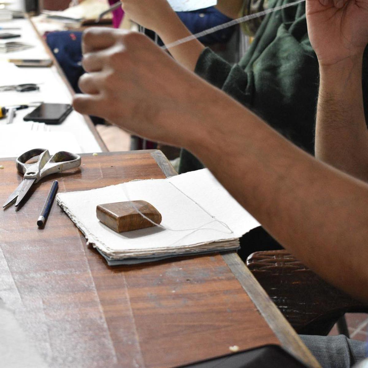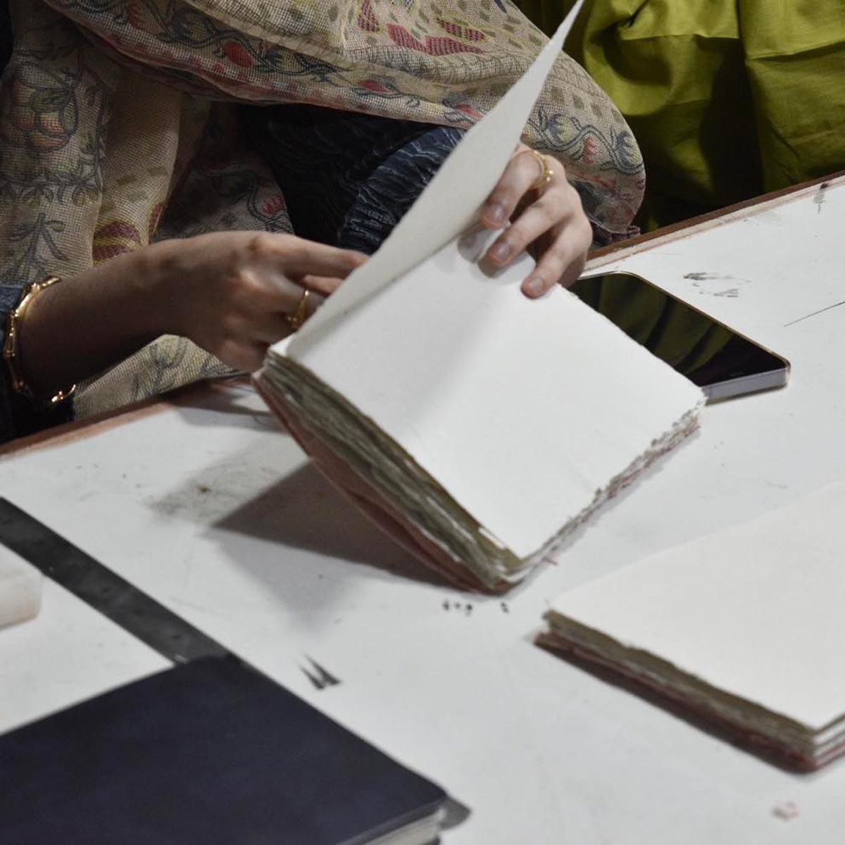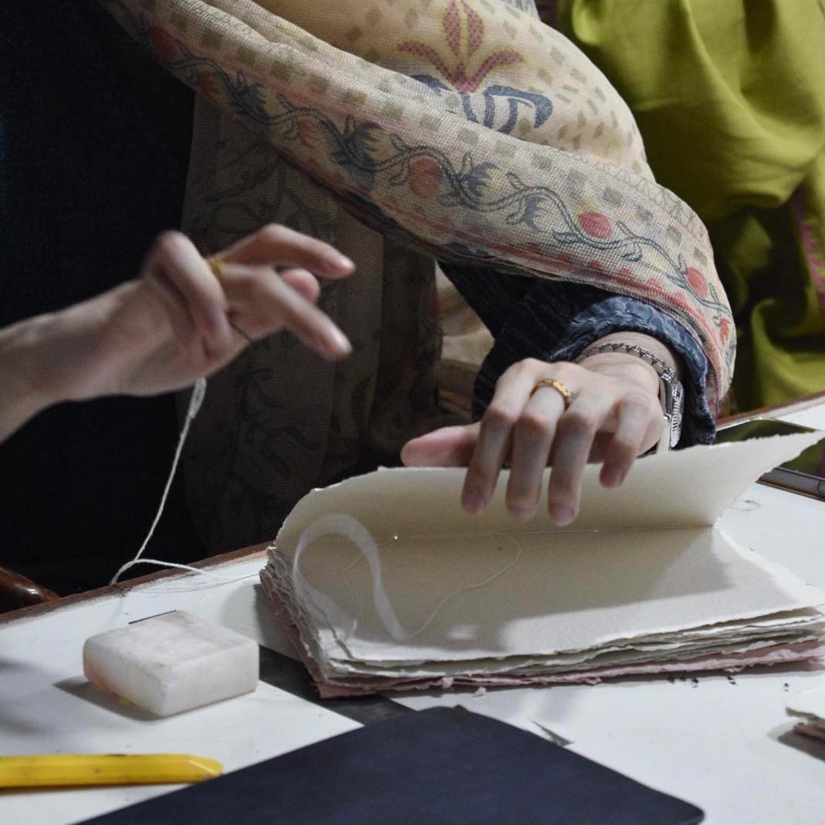 The workshop "Tradition of Islamic Bookbinding", led by Amina Cheema, introduced participants to the heritage of Islamic bookbinding as both craft and artistic practice, reviving its place within the arts of the book, rooted in kasb (skill) and kamal (excellence).