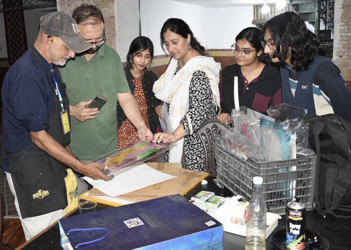 As part of the NCA Triennale 2025, artist Mueed Farrukh led an engaging hands on workshop exploring the expressive potential of the toothbrush as a painting tool. Over the course of three days, participants experimented with spattering techniques on transparent acrylic sheets, discovering new ways to transform everyday objects into instruments of art.