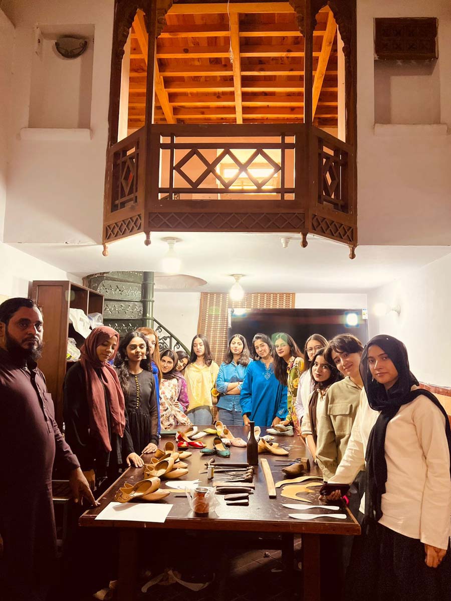 The week long workshop; Native Footprints: Khussa Making, invited participants to rediscover the art of handcrafted footwear under the guidance of artisans Sadaf Hammad and Sidra Ashraf.