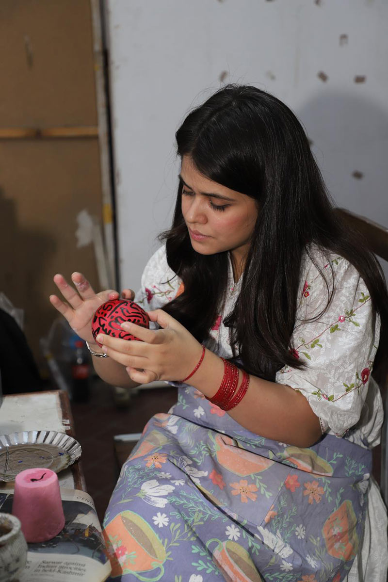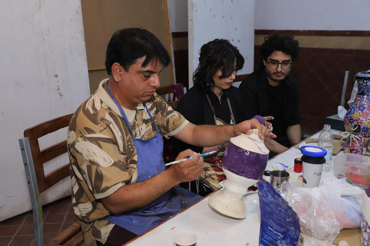 Participants explored every stage of the papier mache process, from preparing the paper pulp and shaping forms to layering, burnishing, and hand painting motifs inspired by Kashmiri tradition. Under Rasheed’s guidance, the workshop became a space of dialogue between heritage and contemporary art making, where texture, colour, and form intertwined to tell stories of cultural continuity and transformation.